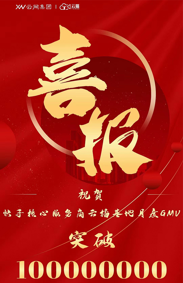 熱烈祝賀云網(wǎng)集團旗下快手電商核心服務商—云播基地10月服務主播GMV突破1個億!