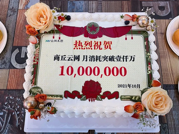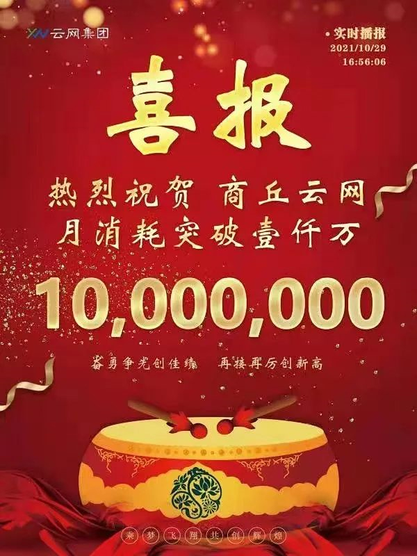 云網(wǎng)集團旗下分公司商丘云網(wǎng)傳來喜報,月消耗突破壹仟萬!