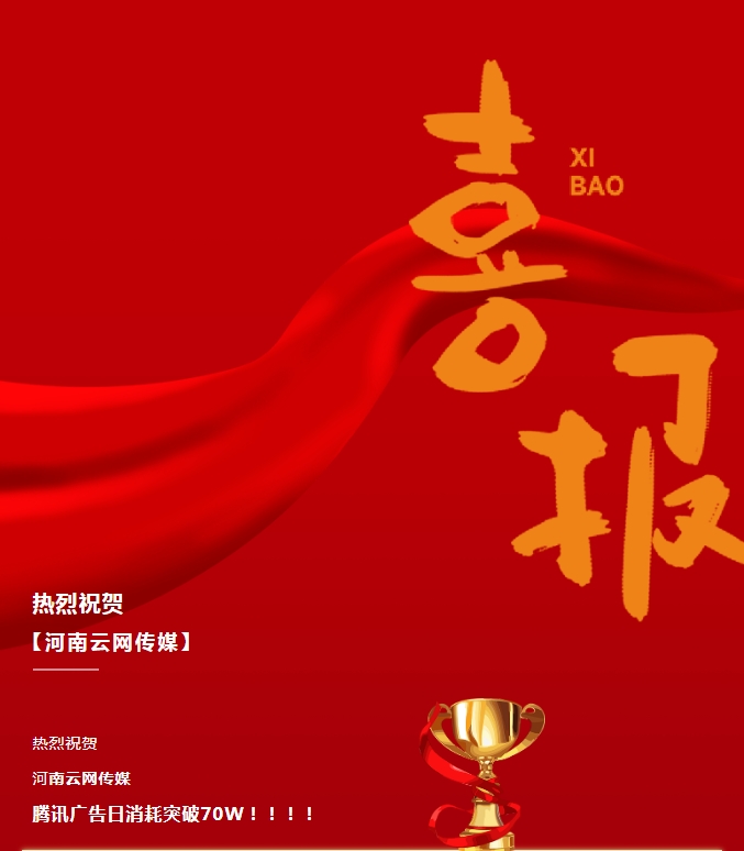 祝賀:云網(wǎng)傳媒騰訊廣告單日消耗突破70W!