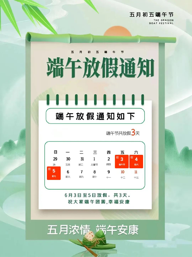 端午節(jié)放假3天(6月3日-6月5日),6月6日(周一)正常上班。